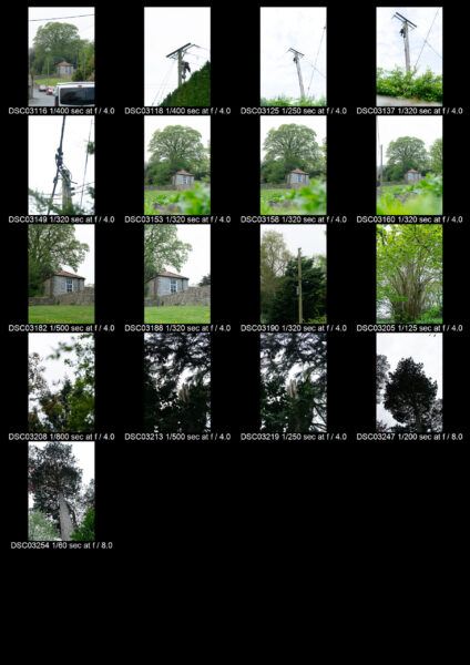 During this shoot I was focued on the structures of man made things breaking up nature. I have focued on things like walls, buildings, powerlines and temporary structures like road signs. Towards the end I experimented with shilouetes and trees, creating an interesting flat colour pallete that was near black and white. was this inspired by any artists work – which particular elements of their work – any technical process – aperture, shutterspeed, light conditions, fprml elements eg – rule of thirds symetry