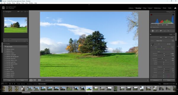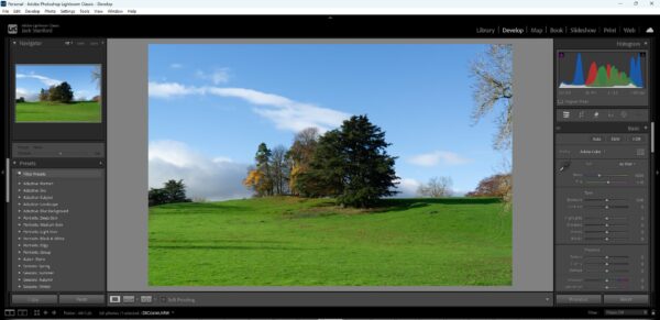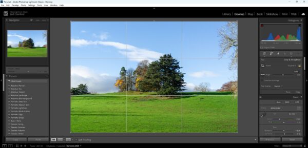 I then moved onto crop and rotate, I didn’t do much here just slightly rotated the image to be in line with the horizon which very slightly cropped in so I moved the image over to the right to ensure to not cut off the branches on the right hand side anymore as I feel if they become anymore cut off than they already are they will unbalance the image and make them feel less intentional.