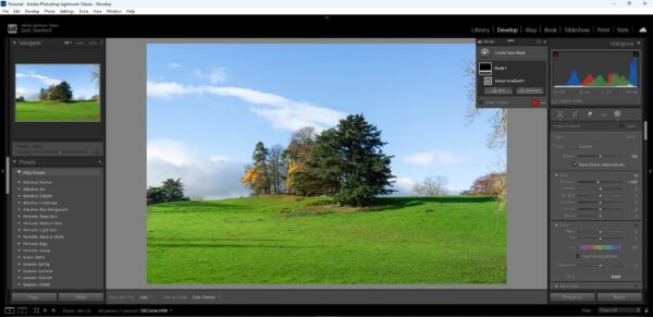 Once I have done the inital overall lighting and exposure I then move to masking some of the distracting areas of the image or otherwise areas that need attention. In this image I thought the grass at the very front of the frame was quite distracting being how bright and sharp it was. Therefore I darkened it using the Exposure slider and then also removed some clarity from it.