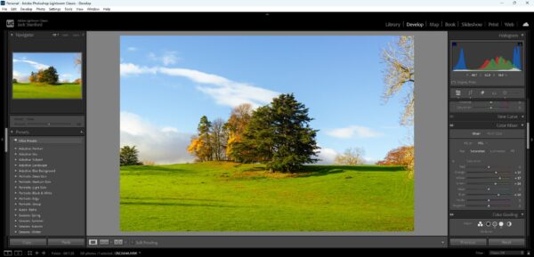 I thought that the image looked a tiny bit cold for being during autumn, so I increased the colour temperature of the overall image, helping bring out the vivid oranges and yellows.